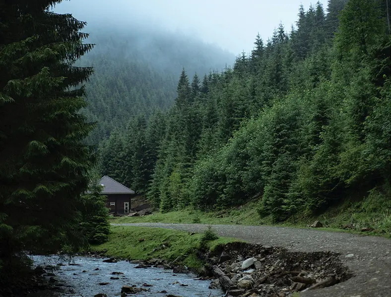 Заготівля – добірна деревина зимової рубки. Ми використовуємо високогірну сосну та ялину, заготовлену вручну взимку, коли дерева перебувають у стані спокою та мають природно низьку вологість.