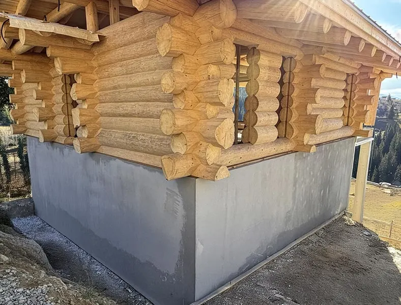 Це складний, багатоетапний процес, що потребує високої кваліфікації майстрів і мистецтва ручної роботи з ювелірною точністю. При укладанні кожного вінця в міжвінцевий паз і кутові чаші обов’язково додається льоноволоконний утеплювач. Завдяки щільному самозаклинюванню чаш утеплювач виконує функцію ущільнювача та додаткового теплового бар’єра, а не є єдиним захистом від продування, як у деяких інших технологіях.