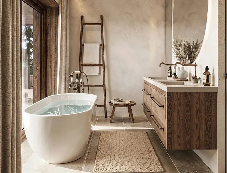 Натуральні матеріали заспокоюють розум, створюючи відчуття безпеки, тепла та гармонії. Інтер’єр з дерева сприяє глибокому зв’язку з природою.